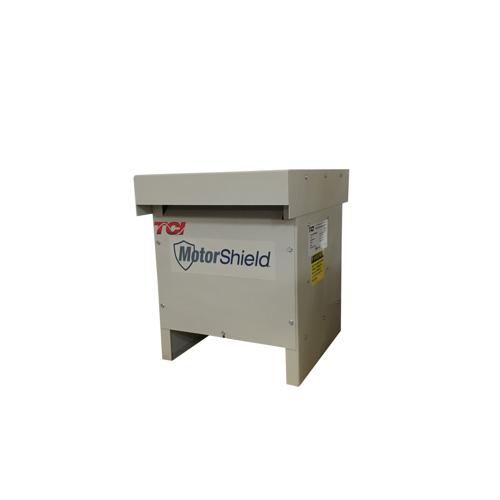 MotorShield (MSD) sine wave filter greatly extends motor and cable life from harmful VFD PWM drives. UL Listed Type 1/3R, Open UL 508 good for up to 15,000ft. cable leads. a 3-phase low-pass sine wave filter designed and developed by TCI to deliver conditioned power to motor loads driven by PWM drives with switching frequencies from 2 kHz to 16 kHz. Any drive control parameter which has the effect of reducing the carrier or switching frequency below 2 kHz at any time must be disabled. Some sine wave or long lead mode drive parameters or operating modes can have this effect. This filter is suitable for VFD drives configured to Volts per Hz modes only. Available for three phase voltage systems up to 460/480 Volts, the MotorShield™ is a passive LC filter connected in series with the output terminals of the variable frequency drive. This design removes the carrier frequency distortion from the output voltage waveform resulting in a nearly pure sine wave voltage profile. The MotorShield™ sine wave filter reduces the effects of the reflected wave phenomenon (dV/dt), which can cause motor heating, insulation damage, and excessive audible noise. The reduction of high frequency VFD output currents extends the life of motors and transformers and eliminates the need for special motor cables. The MotorShield™ reduces VFD ground fault problems and noise interference in transducer signals caused by stray high frequency harmonic currents.