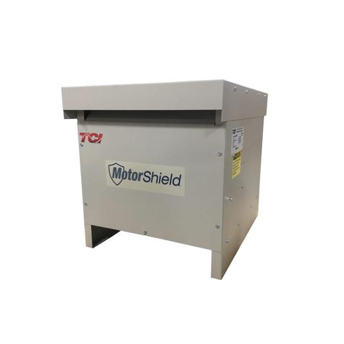 MotorShield (MSD) sine wave filter greatly extends motor and cable life from harmful VFD PWM drives. UL Listed Type 1/3R, Open UL 508 good for up to 15,000ft. cable leads. a 3-phase low-pass sine wave filter designed and developed by TCI to deliver conditioned power to motor loads driven by PWM drives with switching frequencies from 2 kHz to 16 kHz. Any drive control parameter which has the effect of reducing the carrier or switching frequency below 2 kHz at any time must be disabled. Some sine wave or long lead mode drive parameters or operating modes can have this effect. This filter is suitable for VFD drives configured to Volts per Hz modes only. Available for three phase voltage systems up to 460/480 Volts, the MotorShield™ is a passive LC filter connected in series with the output terminals of the variable frequency drive. This design removes the carrier frequency distortion from the output voltage waveform resulting in a nearly pure sine wave voltage profile. The MotorShield™ sine wave filter reduces the effects of the reflected wave phenomenon (dV/dt), which can cause motor heating, insulation damage, and excessive audible noise. The reduction of high frequency VFD output currents extends the life of motors and transformers and eliminates the need for special motor cables. The MotorShield™ reduces VFD ground fault problems and noise interference in transducer signals caused by stray high frequency harmonic currents.