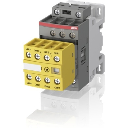 ABB AFS09-30-22-11 is a 3 pole - 690 V IEC or 600 V UL contactor with fixed 2 N.O + 2 N.C. front mounted auxiliary contact blocks with screw connections, controlling motors up to 4 kW / 400 V AC (AC-3) or 5 hp / 480 V UL and switching power circuits up to 25 A (AC-1) or 25 A UL general use. AFS contactors can be easily integrated in machine manufacturer’s systems complying with main standards EN ISO 13849 and EN 62061 - guaranteeing the safe use of your machinery and equipment. An easily identifiable yellow low energy auxiliary contact block ensures the status feedback circuits required in machine safety applications. Thanks to the AF technology, the contactor has a wide control voltage range (24 ... 60 V), managing large control voltage variations, reducing panel energy consumptions and ensuring distinct operations in unstable networks. Furthermore, surge protection is built-in, offering a compact solution. AF contactors have a block type design, can be easily extended with add-on auxiliary contact blocks and an additional wide range of accessories.