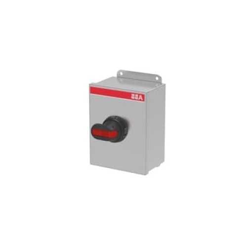 ABB EOT60U3S4-P - Enclosed Switch Disconnector, 3-p. Max. Horse power rating at three phase 480V 40HP. General purpose current rating 60A. Stainless steel enclosure, NEMA Type 4/4X Watertight, Pistol handle. Interlocked cover. Defeatable interlocking.