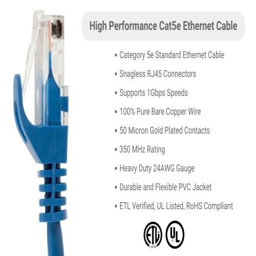 Cable PC5-BL-01-EZ - Cat 5E Ethernet Patch Cable, Snagless, UTP, 1 ft, Blue