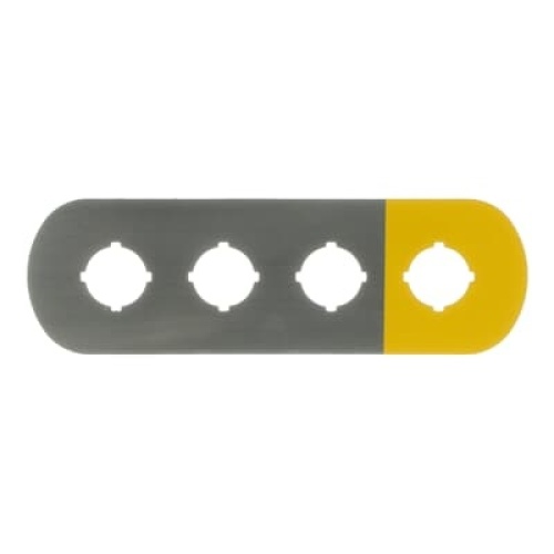 Four seat legend plate in silver-gray aluminum with 1 pos in yellow for plastic enclosure