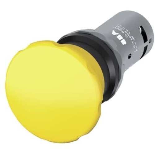 ABB CPM3-10Y-11 Compact Mushroom Pushbutton - Momentary - Mushroom - Yellow - Non-illuminated - Black Plastic - 1NO+1NC