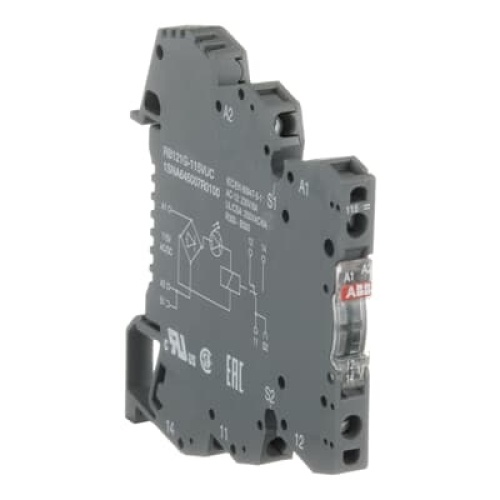 The RB121G-115VUC is a boxed interface relay with screw terminals, which can be seemlessly snap-on mounted onto a DIN Rail
