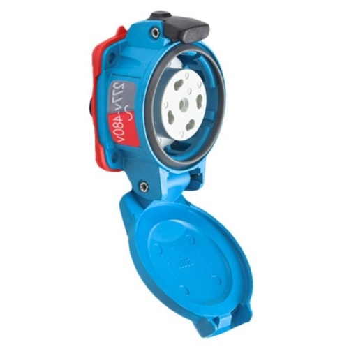 Meltric 01-N4047 Standard Duty PN20 Receptacle 277/480 VAC 20A Size 1 3P+N+G Blue Poly IP66,IP67 Screw Terminal Standard Pawl UL 498,UL 1682