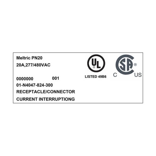 Meltric 01-N4047-824-300 Standard Duty PN20 Receptacle 277/480 VAC 20A Size 1 3P+N+G Blue Poly IP66,IP67 Screw Terminal Screw Type Locking Pawl UL 498,UL 1682