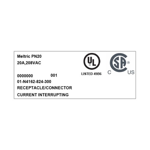 Meltric 01-N4162-824-300 Standard Duty PN20 Receptacle 208 VAC 20A Size 1 2P+G Blue Poly IP66,IP67 Screw Terminal Screw Type Locking Pawl UL 498,UL 1682
