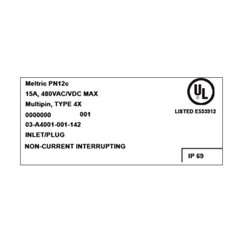Meltric 03-A4001-001-142 Multipin PN12c Inlet 600 VAC/130 VDC 2A/7.5A Blue Poly