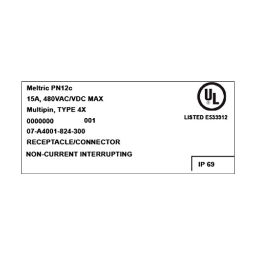 Meltric 07-A4001-824-300 Multipin PN12c Receptacle 600 VAC/130 VDC 2A/7.5A Blue Metal