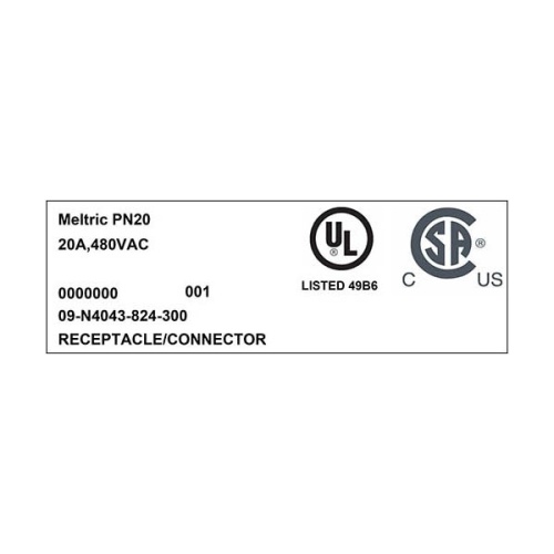 Meltric 09-N4043-824-300 Standard Duty PN20 Receptacle 480 VAC 20A Blue Metal