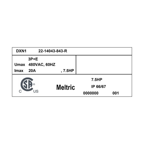 Meltric 22-14043-843-R Hazardous Location DXN20 Receptacle 480 VAC 20A Size 1 3P+G Black Poly IP66,IP67 CSA Class I Div 2 Screw Terminal Padlock Pawl UL 498,UL 1682