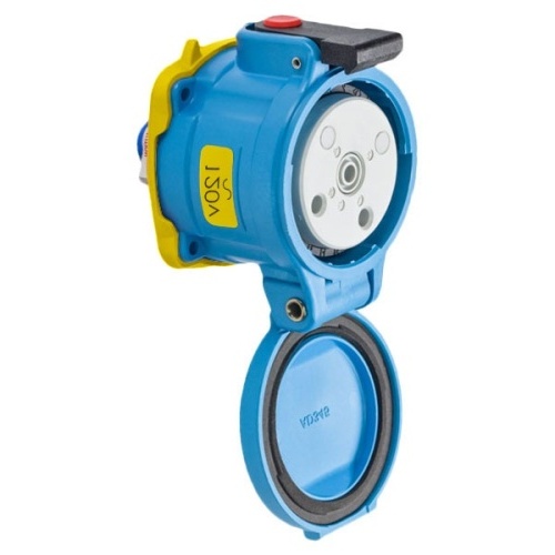 Meltric 31-14235-K16 Standard Duty DR30 Receptacle 120 VAC 30A Size 2 1P+N+G Blue Poly IP55 Screw Terminal Standard Pawl UL 498,UL 1682