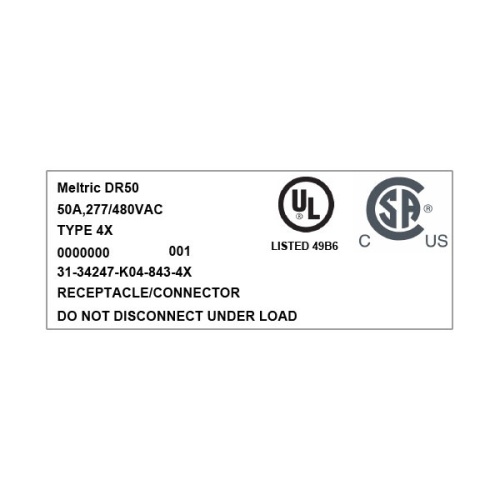Meltric 31-34247-K04-843-4X Standard Duty DR50 Receptacle 277/480 VAC 50A Blue Poly