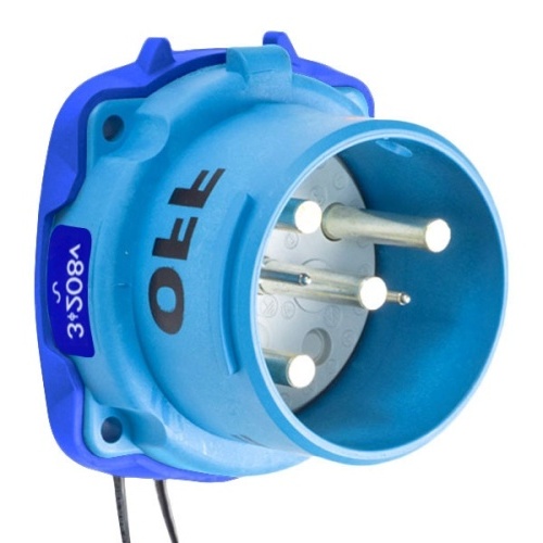 Meltric 31-68233-K16-972 Standard Duty DR100 Inlet 208 VAC 100A Size 4 3P+G Blue Poly IP54 Screw Terminal UL 498,UL 1682