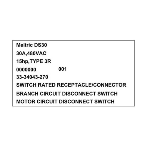 Meltric 33-34043-270 Switch-Rated DS30 Receptacle 480 VAC 30A Blue Poly 3P+G 15 HP