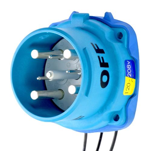 Meltric 33-68237-C-K16 Switch-Rated DS100C Inlet 120/208 VAC 100A Blue Poly 3P+N+G 5 HP,20 HP