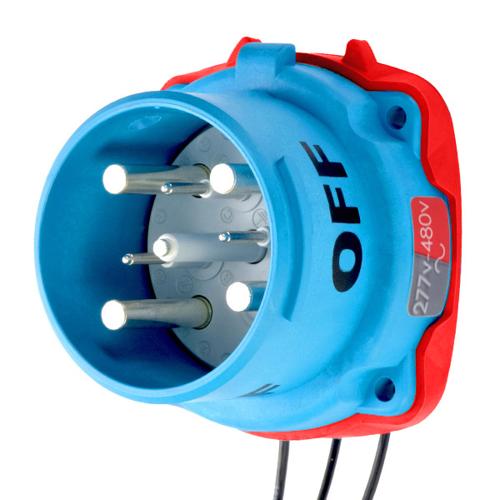 Meltric 33-68247-C-K04-972 Switch-Rated DS100C Inlet 277/480 VAC 100A Blue Poly 3P+N+G 15 HP,50 HP
