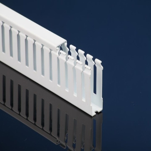 Iboco T11530W White Wire Duct 6' Length (Wide Finger) with Cover (1 1/2" wide X 3" deep),6' lengths. Made of rigid PVC with a UL 94V-0 flammability rating. Flush cover designed to hold 10% more wires. Standard mounting holes and wide finger design make it more rigid and larger slot width.