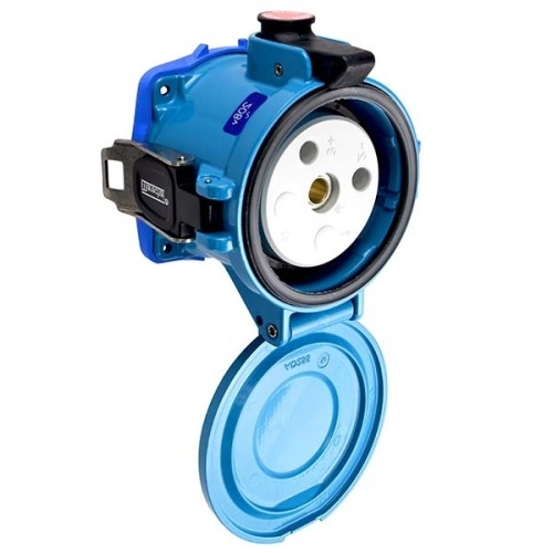 Meltric 37-24162 Switch-Rated DS200 Receptacle 208 VAC 200A Size 6 2P+G Blue Metal IP55 Screw Terminal Standard Pawl UL 498,UL 1682