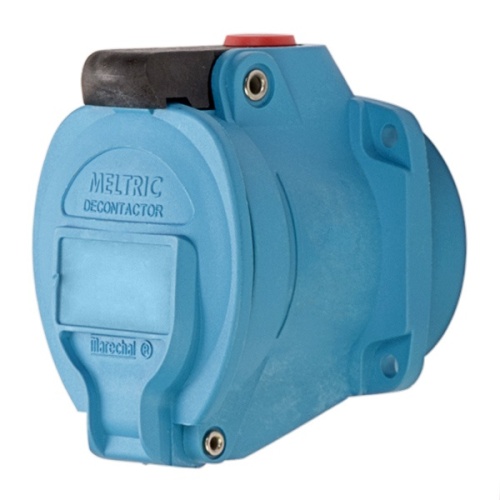 Meltric 63-14047-375-843-NC Switch-Rated DSN20 Receptacle 277/480 VAC 20A Size 1 3P+N+G Blue Poly IP66,IP67,IP69 Screw Terminal Padlockable Mushroom Pawl UL 498,UL 1682