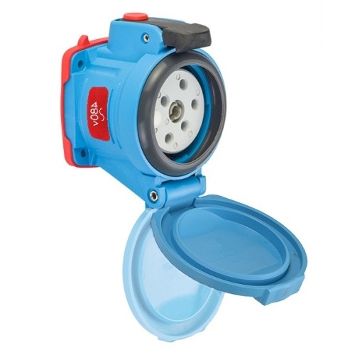 Meltric 63-34043-972-270 Switch-Rated DSN30 Receptacle 480 VAC 30A Size 2 3P+G Blue Poly IP66,IP67,IP69 Screw Terminal Standard Pawl UL 498,UL 1682