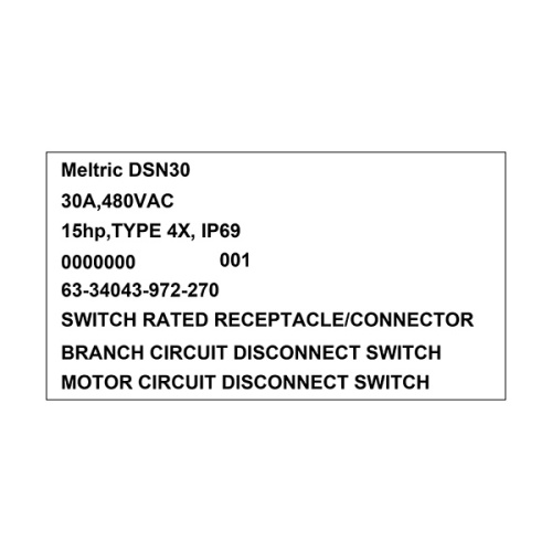 Meltric 63-34043-972-270 DSN30 Switch-Rated Receptacle 480 VAC 30A Blue Poly