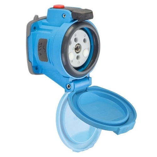 Meltric 63-34045-972 Switch-Rated DSN30 Receptacle 277 VAC 30A Size 2 1P+N+G Blue Poly IP66,IP67,IP69 Screw Terminal Standard Pawl UL 498,UL 1682