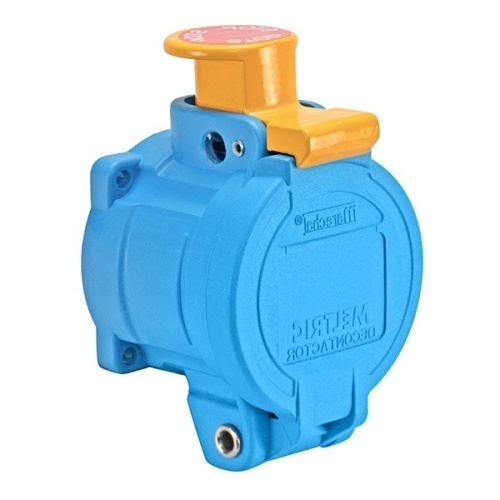 Meltric 63-34047-972-375-843-NC Switch-Rated DSN30 Receptacle 277/480 VAC 30A Size 2 3P+N+G Blue Poly IP66,IP67,IP69 Screw Terminal Padlockable Mushroom Pawl UL 498,UL 1682