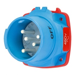 Meltric 63-38047-972 Switch-Rated DSN30 Inlet 277/480 VAC 30A Blue Poly 3P+N+G 3 HP,15 HP