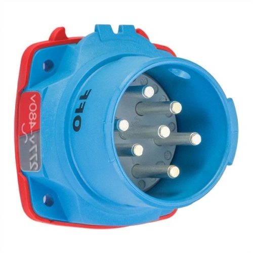 Meltric 63-38047-972 Switch-Rated DSN30 Inlet 277/480 VAC 30A Size 2 3P+N+G Blue Poly IP66,IP67,IP69 Screw Terminal UL 498,UL 1682