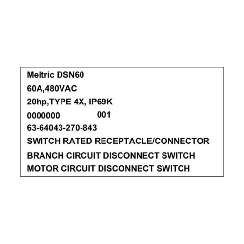 Meltric 63-64043-270-843 DSN60 Switch-Rated Receptacle 480 VAC 60A Blue Poly