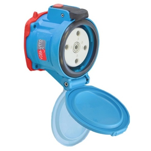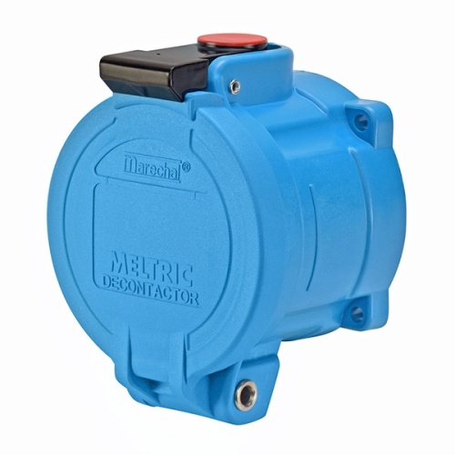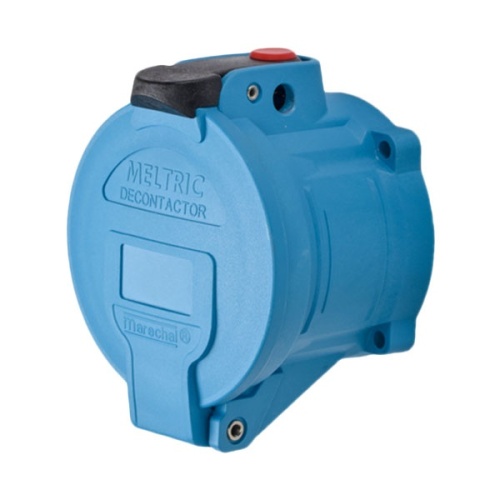 Meltric 63-64047-843 Switch-Rated DSN60 Receptacle 277/480 VAC 60A Size 3 3P+N+G Blue Poly IP66,IP67,IP69 Screw Terminal Padlock Pawl UL 498,UL 1682