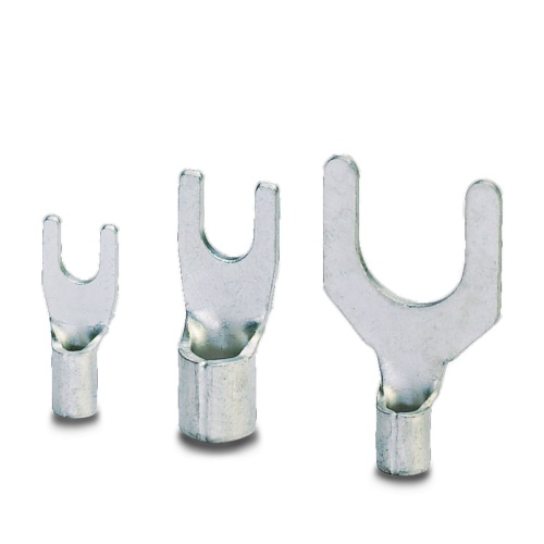 The fork-type cable lugs without plastic sleeve feature a hard-soldered neck. In conjunction with the CRIMPFOX‑RC ... and CRIMPFOX‑RCI ... pliers they can be used to achieve maximum conductor pull-out forces