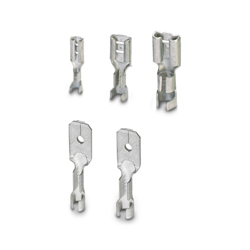 The uninsulated slip-on sleeves and flat plugs are made from electrolytically tin-plated brass