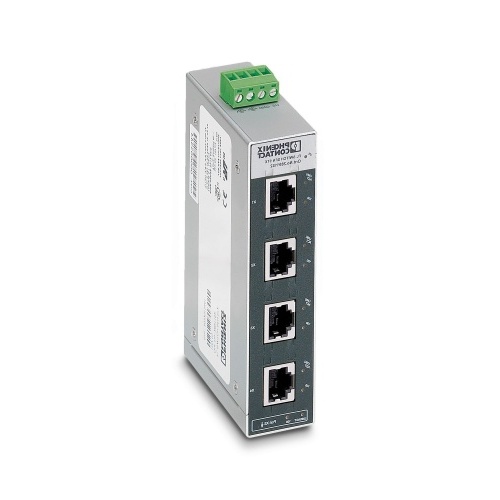 Phoenix Contact 2891021 An Ethernet switch with five built-in RJ45 ports features an automated detection system that identifies the desired transmission speed of either 10 or 100 megabits per second when using RJ45 cables, and also includes a cross-talk prevention function to minimize interference and ensure stable data transmission.