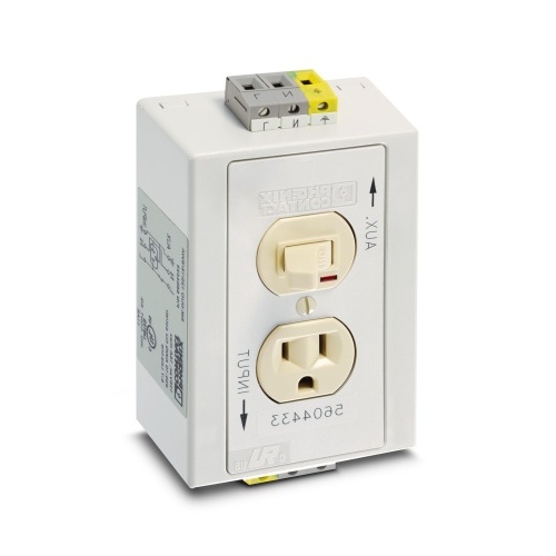 Phoenix Contact EM-DUO 120/15/SWA. Double Socket with 1 Switch and 1 Receptacle 125 VAC 15 Amp AC Plug Din Rail Mount with screw connection,with UL rating,White.