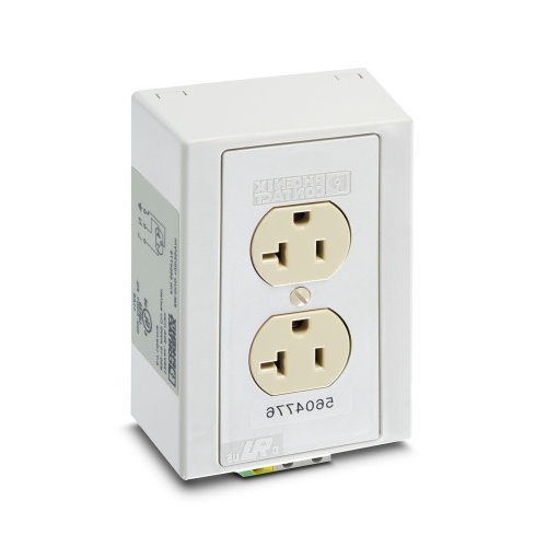 Phoenix Contact EM-DUO 120/20/V/H. Double Socket with 1 Switch and 1 Receptacle 125 VAC 20 Amp AC Plug Din Rail Mount with screw connection,with UL rating,White.