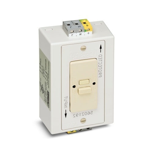 Phoenix Contact EM-DUO120/20/GFI/AUX/NO. Double Socket 125 VAC 20 Amp witout profile GFCI Din Rail Mount with screw connection,with UL rating,White.