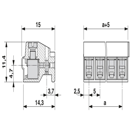 High terminal block capacity thanks to rectangular terminal block space