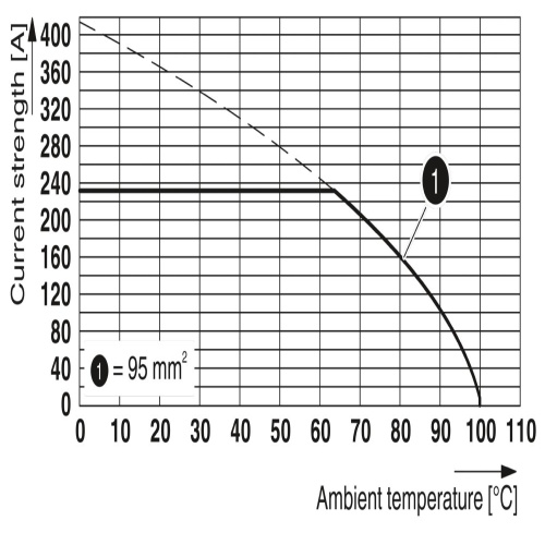Phoenix Contact 1841869 A printed circuit board terminal with a nominal current rating of 232 A and a rated voltage of 1000 V is available in the MKDSP 95/..-F product range, featuring a cross-sectional area of 95 mm2. The terminal has two potentials and is mounted on a wave soldering PCB using screw connections with tension sleeves and T40 Torx® screw heads, which are connected linearly across 2 positions per row on a single row with no connection direction specified.