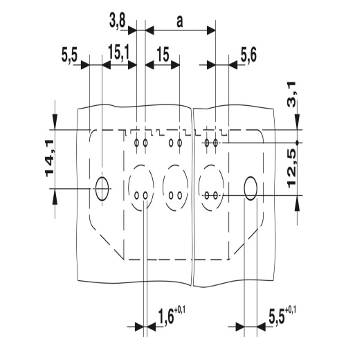Phoenix Contact 1932520 A printed circuit board terminal is specified with a nominal current capacity of 125 A and a rated voltage of 1000 V, featuring a cross-section of 35 mm2. It has five potentials, arranged in a single row of five positions, and is part of the MKDSP 25/..-F product range. The terminal's dimensions include a pitch of 15 mm, connected via screw connection with tension sleeve using Z2L Slotted Pozidriv screws. Mounting is done through wave soldering, with the conductor and PCB connection direction set at 0 degrees. The terminal has a green color and follows a linear pin layout, where each potential has four solder pins. It comes packaged in cardboard, but should not be subjected to permanent mechanical loads.