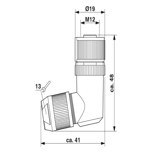 Phoenix Contact 1424677 The data connector features an INTERBUS interface with a transmission speed of 500 kbps and a 5-position configuration. The unit is shielded and has a socket that is angled at M12, making it easier to access and secure the connection. It utilizes a push-lock spring mechanism for easy attachment, while the knurl material is made from zinc die-cast with a nickel-plated finish. The external cable diameter varies between 4 mm and 8 mm.