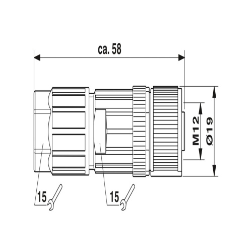 Phoenix Contact 1072545 The specified data connector is a M12 socket with a straight body and push-lock spring connection. It features a knurled plastic material for gripping and has an adjustable length range from 4mm to 8mm in diameter, while also supporting protocols such as CANopen and DeviceNet.