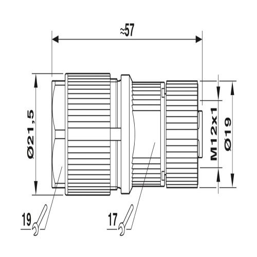 Phoenix Contact 1027469 The power connector is a type of electrical connection that features a four-position socket with a shielded design and an M12 straight pin configuration, designated as S coding. The connector is secured using a crimp connection method, where the knurled zinc die-cast material provides a secure hold on the cable diameter ranging from 6.5 to 11 mm without any external contacts.