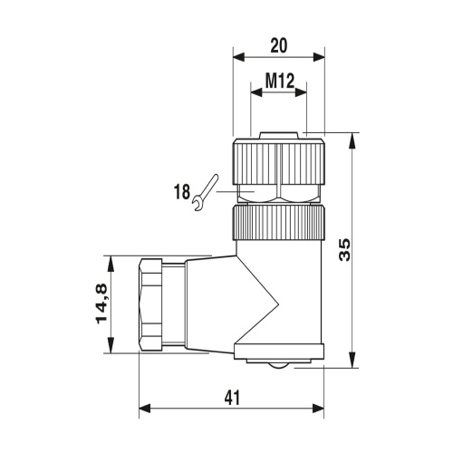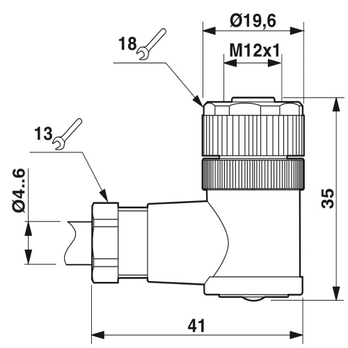Phoenix Contact 1681130 This connector features a universal design with an angled M12 socket and a 4-position configuration, allowing for secure screw connections. The housing is made of knurled plastic, providing a comfortable grip, while the cable gland is Pg7 rated to accommodate cables with external diameters ranging from 4 mm to 6 mm.