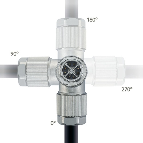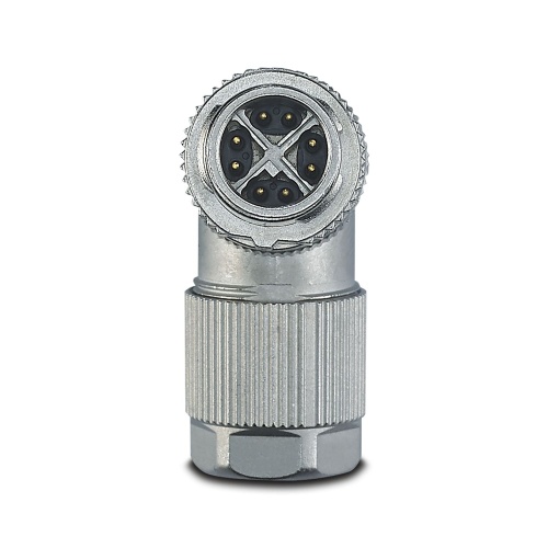 Phoenix Contact 1417443 The data connector features a CAT6A Ethernet cable with a 10 Gbps speed capacity, a 8-position shielded design and an angled M12 SPEEDCON plug. The connector is coded as X and utilizes Piercecon's fast connection technology. Its knurl material is zinc die-cast with nickel plating, providing an external cable diameter of up to 4-8 mm in size.