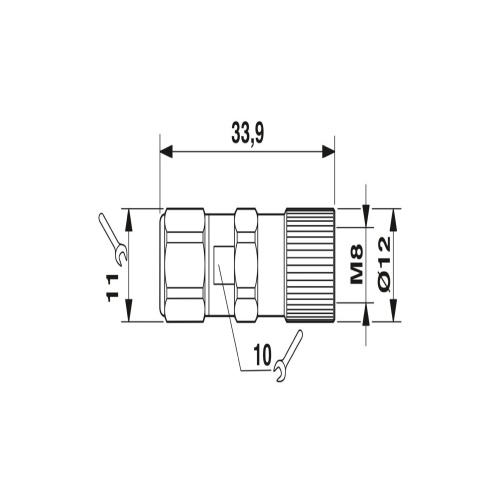 Phoenix Contact 1506778 A connector with a universal design featuring a 3-position socket and an M8 code is available with a fast-pierce connection option. The connector's housing is made of brass, with an outer layer that has been nickel-plated, allowing for a secure fit within a cable with an external diameter ranging from 3 to 5 millimeters.