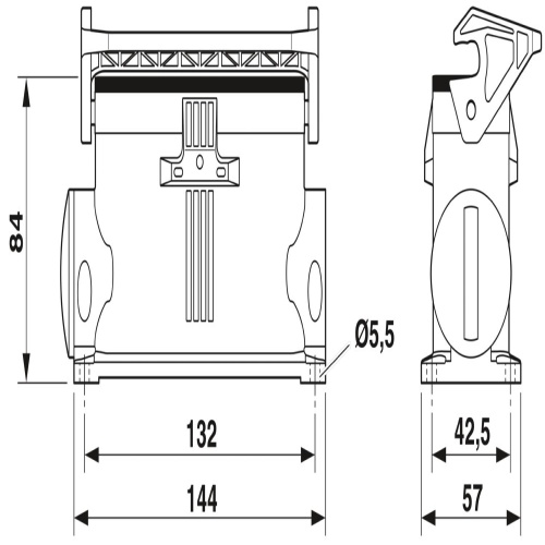 Phoenix Contact 1085185 The surface mounting housing B24 features a single locking latch and is made from die-cast aluminum, which provides resistance to salt water exposure. It has two laterally positioned cable outlets with M25 connectors, measuring 84.7mm in height and does not include a cable gland, adhering to standard specifications.