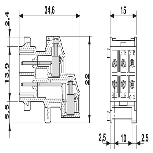 Phoenix Contact 1583555 - Contact insert - VARIOCON - 6 Positions - CuMg - 28 AWG - Light gray - 10 Amp - 250 V - Screw Connection