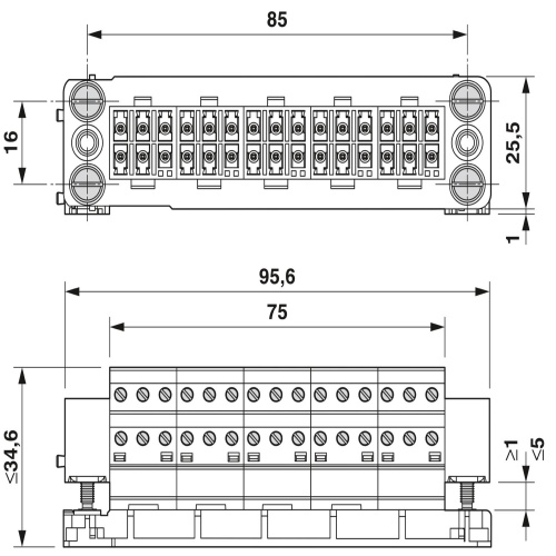 Phoenix Contact 1607383 - VARIOCON - 30 Positions - CuZn - 30 AWG - 10 Amp - 250 V